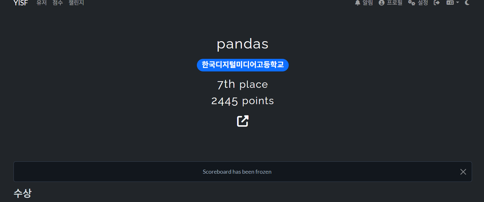 μ΄λ ‡κ²Œ ν•΄μ„œ λ‚˜μ˜ 처음이자 λ§ˆμ§€λ§‰μ΄ 될 것 같은 '순천ν–₯λŒ€ν•™κ΅ μ •λ³΄λ³΄ν˜Έ νŽ˜μŠ€ν‹°λ²Œ(YISF)'λŠ” 끝이 났닀