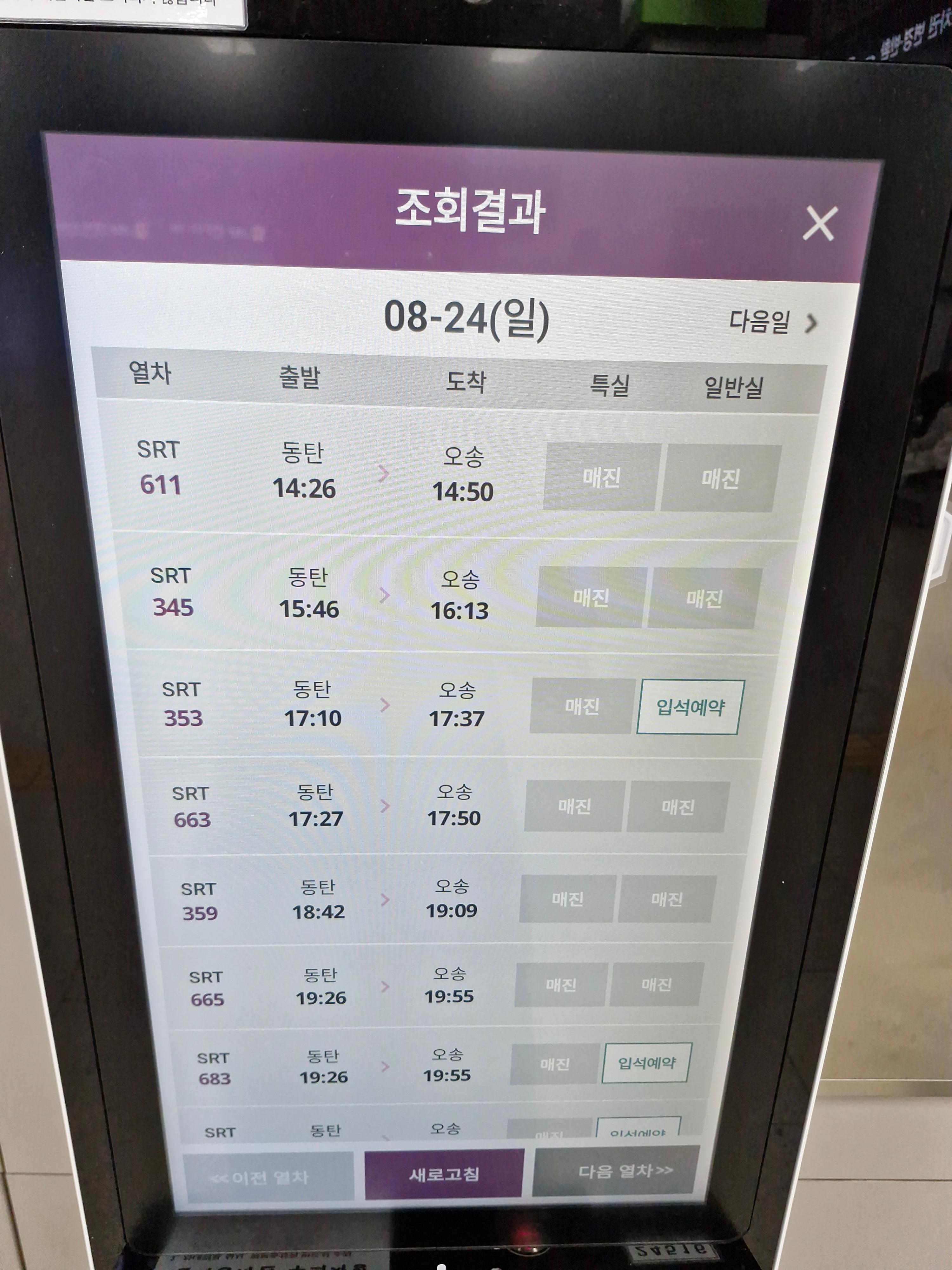 동탄역 SRT를 타고 가면 좋아서 SRT 입석해서 가기로 계획했다